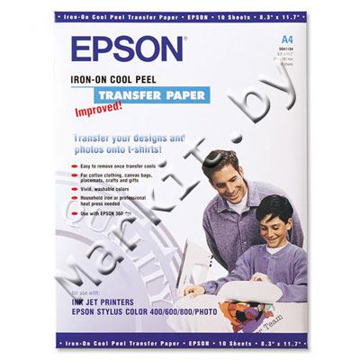 Термотрансферная бумага EPSON Iron-On Cool Peel Transfer Paper, А4, 124 г/м2, МАТОВАЯ (MATTE), 1 лист, односторонняя, для струйной печати (S041154) Код: 4153
