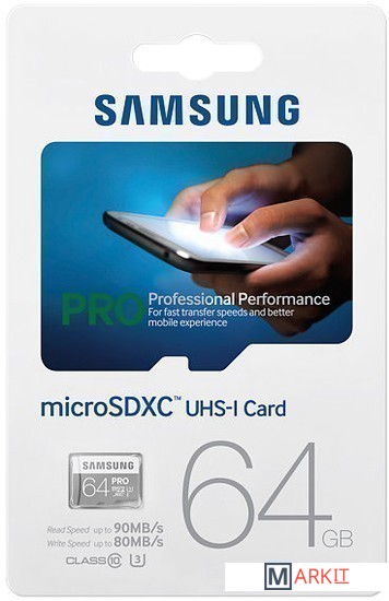 Markit » Карты памяти » Карта памяти Samsung Pro microSDXC UHS-I U3 Class 10 64GB (MB-MG64EA)
