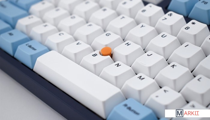 КЛАВИАТУРА БЕЗ КИРИЛЛИЦЫТип: тихий линейныйСила нажатия: 45 грамм (легкие)Длина пути: 3.7 мм (1.9 мм до срабатывания)Данная модель представлена в тёмно-синем окрасе с белыми и светло-голубыми клавишами, расцветка выглядит свежо и воздушно. Клавиатура собрана добротно и монолитно, а сочетание высококачественных PBT клавиш с переключателями Cherry MX и звукопоглощающей подложки позволяет сделать печать на клавиатуре максимально тихой (насколько это возможно для механики). Mini-USB порт спрятан в центре под корпусом, а на самой клавиатуре имеются центральная и две боковые канавки под кабель.Уникальная для клавиатур Leopold фишка: теперь, если у вас нет под рукой мыши, клавиатура сможет взять её обязанности на себя. Указательный стик позволяет перемещать курсор, а для левой и правой кнопок мыши с обеих сторон пробела расположились специальные клавиши.Клавиатура поддерживает сочетание клавиш для регулировки громкости и управления музыкой, также имеется возможность переключения между 6KRO и NKRO.DIP-переключатели на задней панелиДают возможность поменять местами функции кнопок Ctrl и Caps Lock, Windows и Alt, Windows и Fn или отключить Windows.Звукопоглощающая подложкаПоглощает звуки при нажатии, делая процесс печати более тихим по сравнению с обычными механическими клавиатурами.Низкопрофильные клавиши Step-Sculpture2Данные клавиши заметно ниже и имеют оптимальный угол наклона, из-за чего, по отзывам, печатать приятнее и комфортнее, чем на более высоких клавишах.Клавиатура совместима с Mac OSFN-слой работает (кроме клавиш F6, F8, F9), а поменять местами клавиши-модификаторы можно в системных настройках. Проверено с MAC OS 10.13Функция Full N-key Rollover по USB (NKRO)Позволяет нажимать одновременно неограниченное количество клавиш. Для печати идеально подойдет как 6KRO, так и NKRO, независимо от вашей скорости. Для игр NKRO будет плюсом и неважно, нажимаете ли вы больше 6 кнопок или нет, поскольку, играя в любую игру, вы можете случайно нажать пару лишних клавиш и из-за этого клавиатура имеет шанс не среагировать на нажатие, которое вы хотели совершить изначально. Имеется возможность переключения между NKRO и 6KRO через FN сочетания.