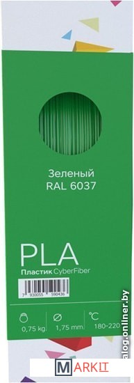 Markit » Расходные материалы для 3д принтера » Пластик CyberFiber PLA 1.75 мм 750 г (зеленый)