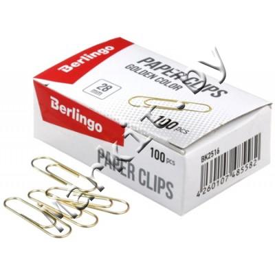 Скрепки Berlingo, 28 мм, 100 шт., округлые, золотистые Код: 33120