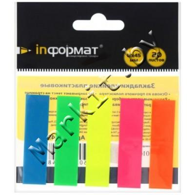 Markit » Канцтовары » Бумажная продукция » Бумага для заметок, боксы для бумаги » Закладки-разделители пластиковые с липким краем inФормат, 12 x 45 мм, 20 л. x 5 цветов, неон